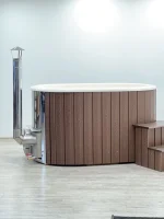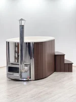 Wie ihre größeren Kollegen bietet die Badewanne Deluxe / External das gleiche Erlebnis und die gleiche Entspannung im Wasserbad, allerdings für maximal zwei Personen. Damit ist es eine passende und nicht minder luxuriöse Alternative für kleinere Freizeiteinrichtungen, kleine Haushalte oder Familiengärten, die private Entspannung allein oder zu zweit bevorzugen. Wie andere Badefässer kann auch diese Badewanne mit Luft- und/oder Hydro-massagedüsen und Beleuchtung ausgestattet werden.