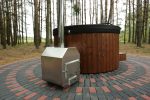 Die Platzierung des Kochers neben der Badetonne gewährleistet eine schnelle Erwärmung des Wassers und gleichzeitig eine große Platzersparnis rund um die Badetonne