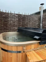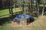 Für dieses Modell empfehlen wir den Einbau eines Whirlpool-Luftdüsensystems, einer LED-Beleuchtung im Inneren des Fasses oder von Lautsprechern für perfekte Entspannung.